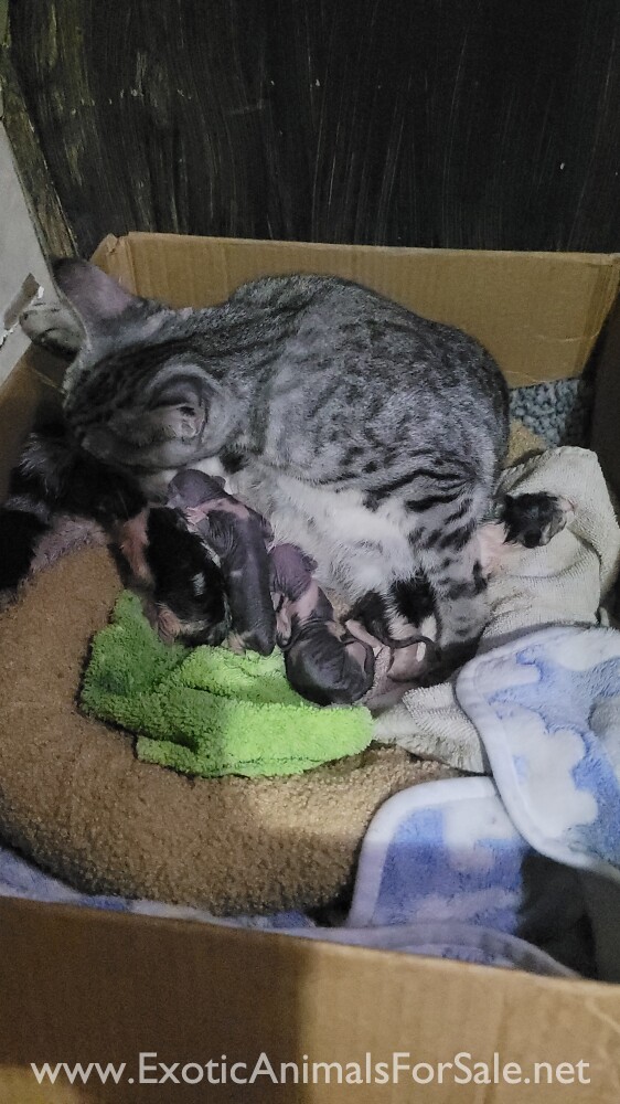 my male calico Sphynx and a European imported jungle cat female with caracal bloodlines new litter 3 boys ready in time.for Christmas live stream on tiktok 6 days a week watch ur kittens growing