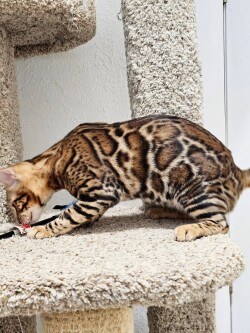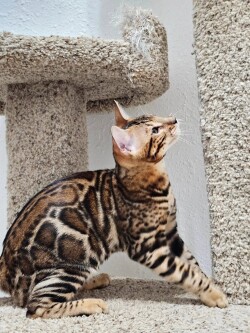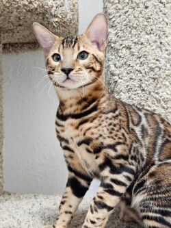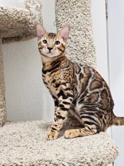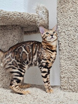 Stunning TICA registered brown spotted bengal male. Beautiful boy with gorgeous rosettes, beautiful coat and extremely glittered coat. Exceptional personality. He will leave fully vaccinated, dewormed, current on flea prevention and vet checked. Raised in home. Health guarantee. Serious inquiries only! All our babies leave with records, one free month of flea prevention and one free month of trupanion pet insurance. Located in Austin Texas. We welcome pickup in person and have delivery available at buyers expense. Serious inquiries only! This boy is amazing and HUGE!! Over 8 lbs at 5 months old!! He is ready to go!! Price includes neuter