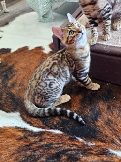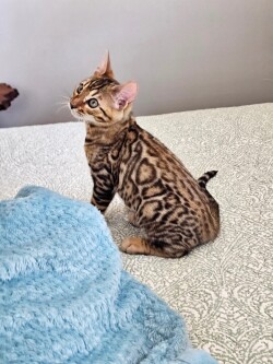 Stunning TICA registered brown spotted bengal male. Beautiful boy with gorgeous rosettes, beautiful coat and extremely glittered coat. Exceptional personality. He will leave fully vaccinated, dewormed, current on flea prevention and vet checked. Raised in home. Health guarantee. Serious inquiries only! All our babies leave with records, one free month of flea prevention and one free month of trupanion pet insurance. Located in Austin Texas. We welcome pickup in person and have delivery available at buyers expense. Serious inquiries only! This boy is amazing!! He is ready to go!!