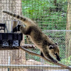Young female Mountain Coatimundi. DOB: 5/31/25. Friendly ambassador animal.