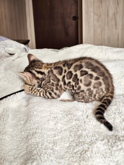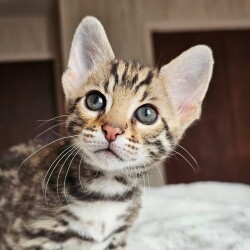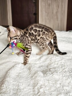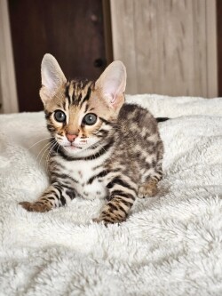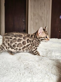 Stunning TICA registered brown F1 bengal male. 50% asian leopard cat 50% sbt bengal. Half leopard. Beautiful boy with gorgeous rosetted leopard spots and stunning face. Baby is being bottle raised. He will leave with one vaccine, dewormed, current on flea prevention and vet checked. Raised in home. Bottle raised. Health guarantee. Serious inquiries only! All our babies leave with records, one free month of flea prevention and one free month of trupanion pet insurance. Located in Austin Texas. We welcome pickup in person and have delivery available at buyers expense. Serious inquiries only! Half leopard cats are amazing cats but not for everyone. Email for any and all questions.