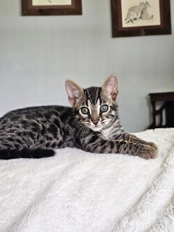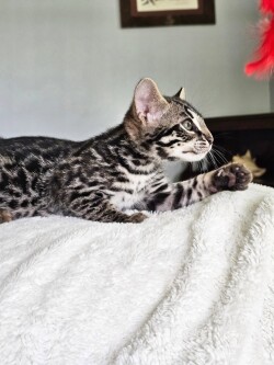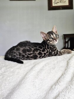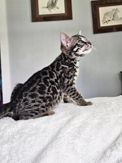 Stunning TICA registered brown charcoal F1 bengal male. 50% asian leopard cat 50% sbt bengal. Half leopard. Beautiful boy with gorgeous leopard spots and stunning face with cheetah tears. Baby is being bottle raised. Health is extremely sweet and playful amd doesnt mind being picked up and loved on.He will leave with one vaccine, dewormed, current on flea prevention and vet checked. Raised in home. Bottle raised. Health guarantee. Serious inquiries only! All our babies leave with records, one free month of flea prevention and one free month of trupanion pet insurance. Located in Austin Texas. We welcome pickup in person and have delivery available at buyers expense. Serious inquiries only! Half leopard cats are amazing cats but not for everyone. Email for any and all questions. He is ready to go!!!