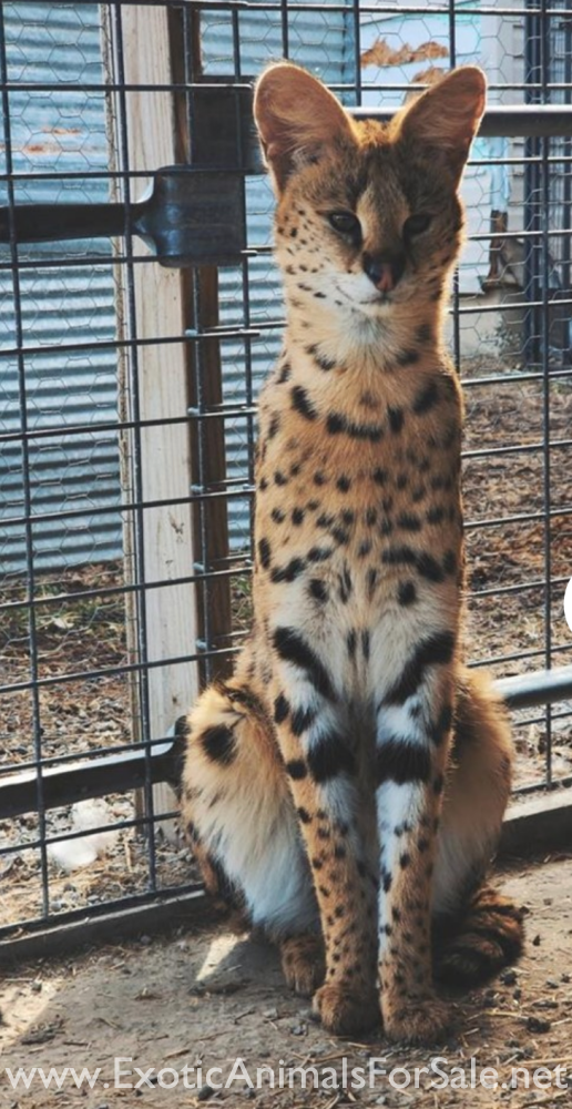4 yr old male and female unrelated serval pair. Fairly tame but not house cats. They are beautiful and we hate to get rid of them but life throws curve balls sometimes. $7,500 for the pair. We accept cash or card. Please call. Thank you!