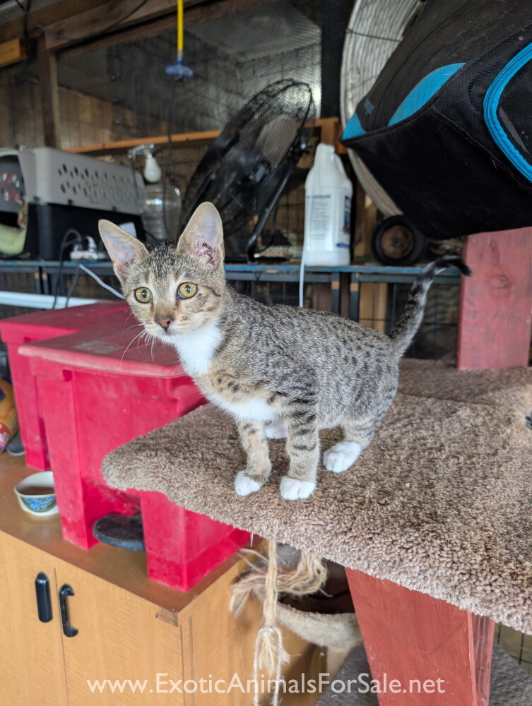 Savannah F2 girl D.O.B. 5-24-24. this girl is beautifully marked large ears and long legs. My sister attempted to use her in a breathing program but she is wanting to get out of the program so she is intact has not had any kittens. She’s got a very s...