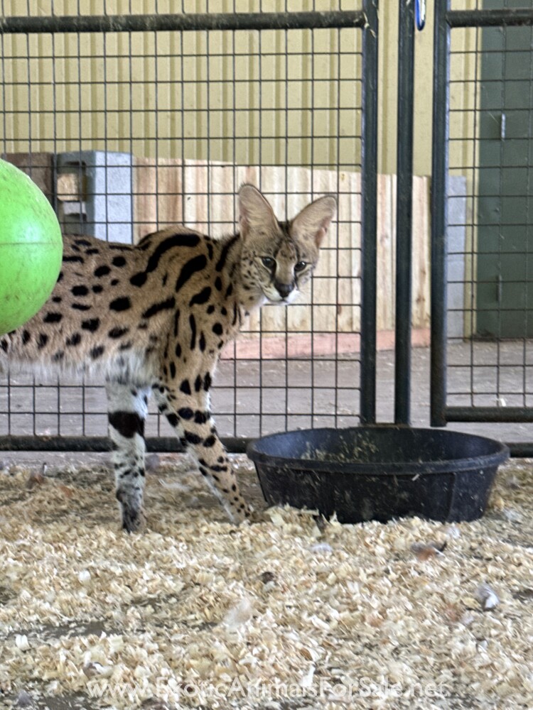 I have one female Serval left out of my spring litters. She was born May 10th and will be ready for her forever home in the couple weeks. She is bottle fed and been around dogs and other cats. Please do your research on servals. They are not just reg...